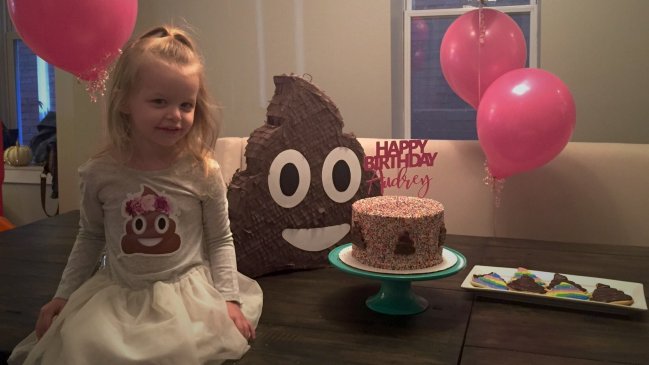 Se trata de Audrey, una pequeña estadounidense que les pidió a sus padres que la temática de su tercer cumpleaños fuera, precisamente, la caca.