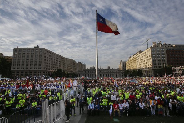 Miles de evangélicos participaron este viernes de la "Marcha por Jesús" que recorrió el centro de Santiago y culminó con un acto en la Plaza de la Ciudadania, frente al Palacio de La Moneda, esto en el marco de la conmemoración del Día de las Iglesias Evangélicas y Protestantes.