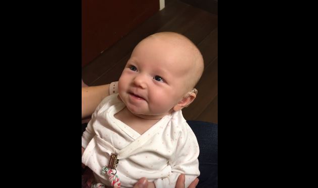 La enternecedora reacción de bebé sorda al escuchar por primera vez la voz de su madre