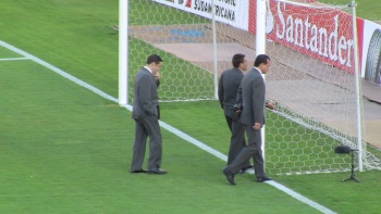 20111026191500 | Los jueces del partido hacen reconocimiento al terreno de juego.