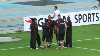 20111026193800 | Jugadores del "Mengao" pisan el terreno de juego del coliseo ñuñoíno.