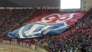 20111026203000 | Foto: La bandera gigante de los seguidores de la U. (Foto: Fernando García/Cooperativa.cl)