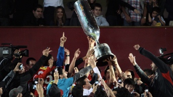 | HInchas de la UC invadieron el campo de juego, después que su equipo se coronara campeón de la Copa Chile. (Foto: UPI) |