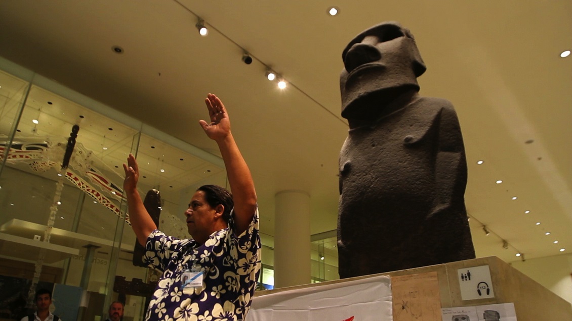 Presenta la historia del moai que está en el Museo de Londres y la intención de traerlo de vuelta a Isla de Pascua.