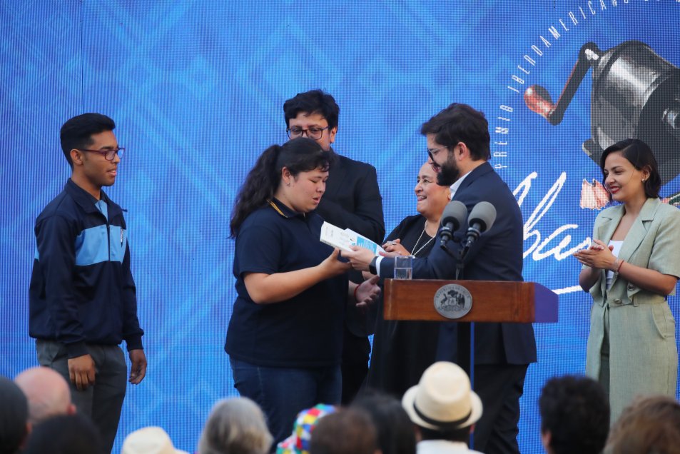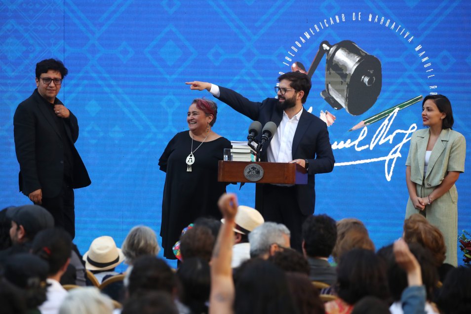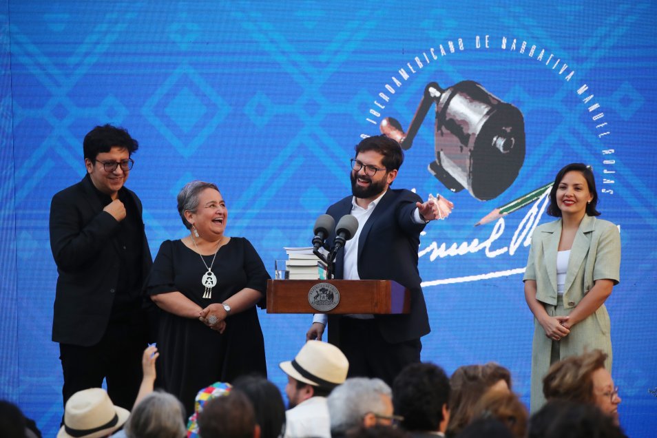 Rosabetty Muñoz y Alejandro Zambra recibieron sus premios iberoamericanos en La Moneda