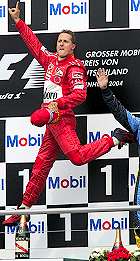 ![]() Tras 11 primeros lugares en 2004, Schumacher ha perfeccionado su celebración en lo alto del podio. (Foto: EFE) |