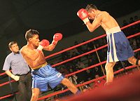 Luis Cerda (Club México) a Omar Duarte (San Fernando), nocaut técnico al primer asalto, en 57 kilos.