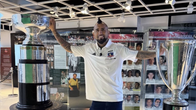 Arturo Vidal vivió un gran cierre de temporada, ya que después de coronarse junto a Colo Colo y disfrutar de un retorno triunfal a La Roja, el volante se dio una vuelta por el museo del conjunto albo para fotografiarse junto a sus dos conquistas de este año.