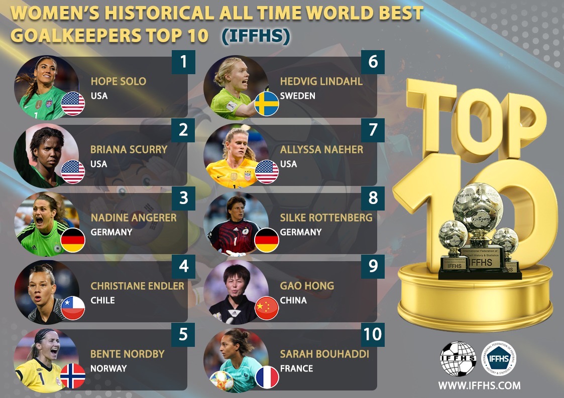La chilena Christiane Endler entró en el top 10 de las mejores arqueras de la historia en el ranking de la Federación Internacional de Historia y Estadística de Fútbol, donde la meta de Olympique de Lyon ocupa el cuarto lugar del reconocimiento.