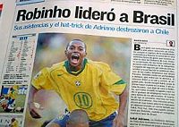 "Robinho lideró a Brasil", tituló el diario As, que en su comentario subrayó que el jugador "ya está al mismo nivel de los otros cracks de la 'canarinha'".