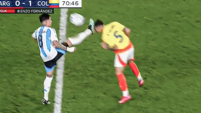 El mediocampista argentino Enzo Fernández fue expulsado este martes ante Colombia tras una fuerte infracción contra Kevin Castaño.