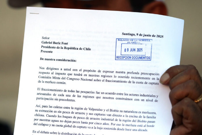 La misiva expresa un profundo descontento con el acuerdo alcanzado la semana pasada en la comisión mixta del Congreso sobre el proyecto de fraccionamiento pesquero, que estableció una cuota de 45% para la pesca artesanal y 55% para la pesca industrial en la captura de la merluza común.