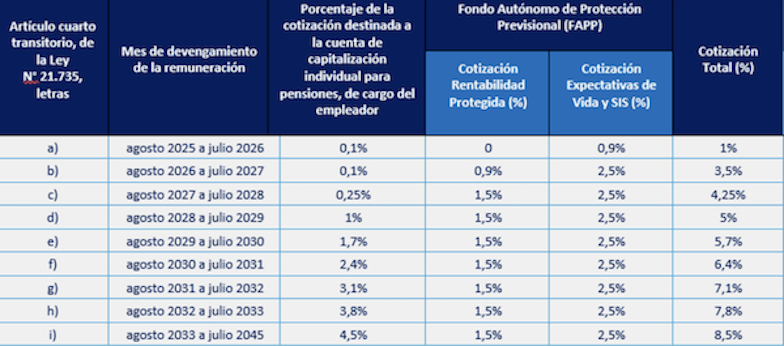 Se trata del inicio de una serie de incrementos que, de manera gradual, llevarán a la cotización del empleador hasta un 8,5 por ciento de sueldo imponible en el año 2033.