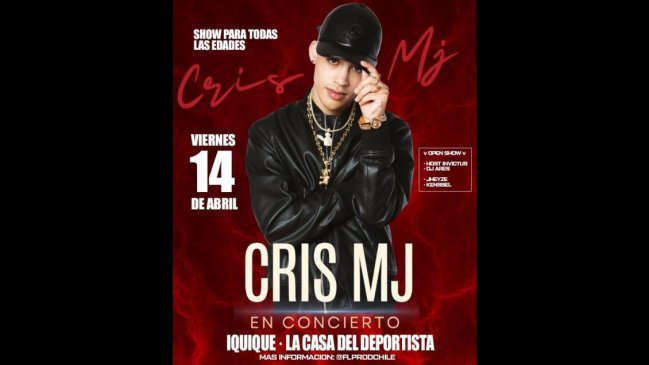 El artista urbano Cris MJ, quien resalta en sus redes que es "el que más suena", tenía programado un show en Iquique el pasado viernes 14 de abril, pero lejos de ser una jornada memorable, el concierto no logró congregar el público esperado y motivó un amargo descargo del productor.