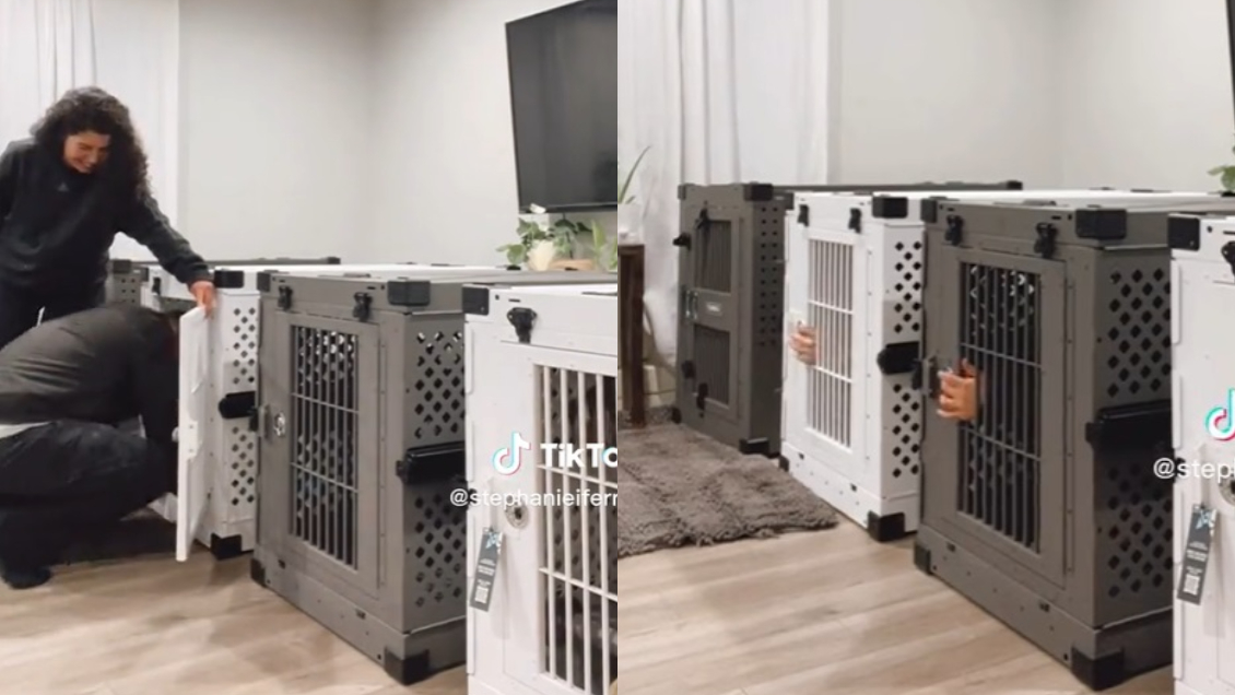 "¡No puedo salir!": Pareja quedó atrapada en las jaulas de sus perros y causó furor en redes
