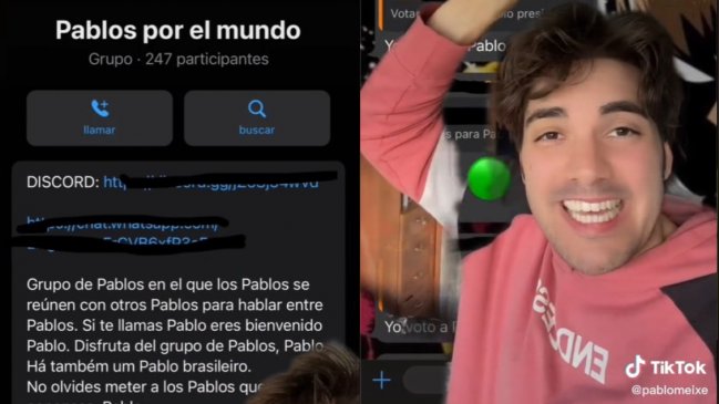 El usuario de Tiktok, Pedro Pablo Paixe publicó un video a la plataforma en el que comenta cómo fue contactado para unirse al chat masivo "Pablos por el mundo" que contaba con más de 240 integrantes que compartían el mismo nombre.