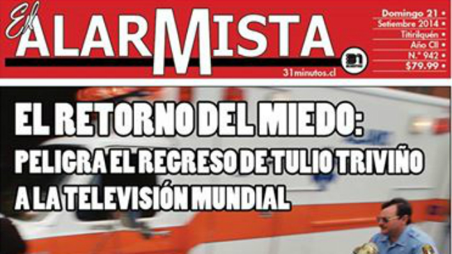 Corre peligro el regreso a la televisión de "31 Minutos", pues su conductor, "Tulio Triviño", se encuentra internado por una panicosis en la Unidad de Pacientes Patológicos del Hospital de Titirilquén.