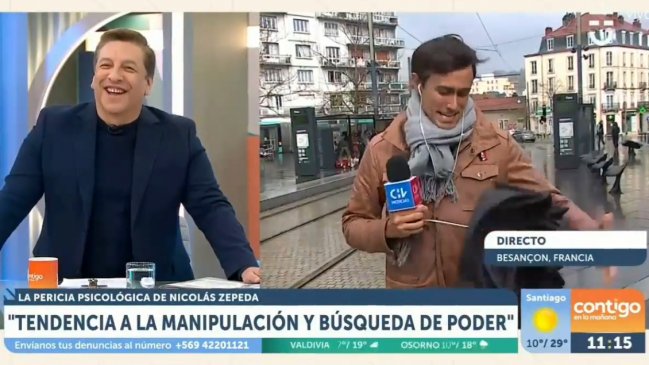 Un divertido chascarro vivió el periodista Roberto Cox durante un despacho desde Francia, país donde se encuentra cubriendo el caso de Nicolás Zepeda para Chilevisión.