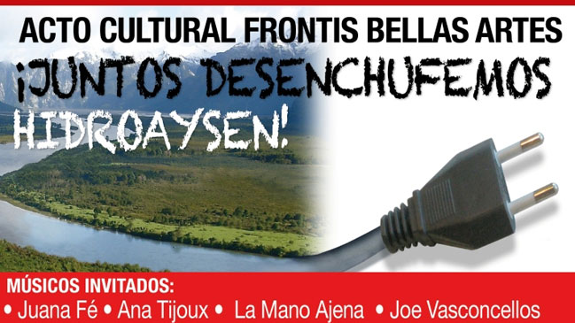 Con una parrilla que contempla la participación de una decena de artistas nacionales, las organizaciones pertenecientes al Consejo de Defensa de la Patagonia realizarán un nuevo acto político cultural, el cual fue bautizado como "Juntos desenchufemos Hidroaysén".