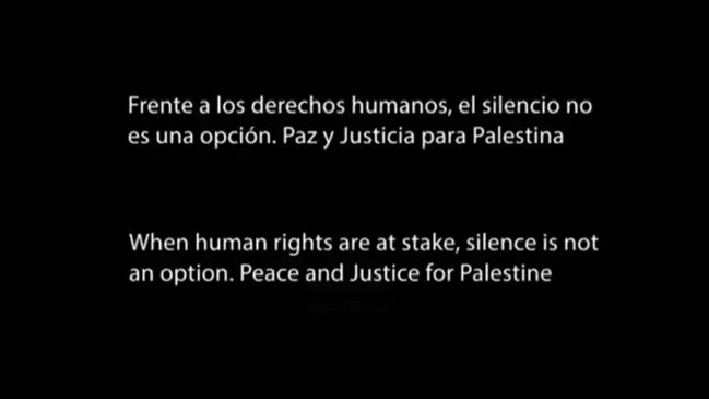 "Frente a los derechos humanos, el silencio no es una opción", fue el mensaje que apareció en pantalla.