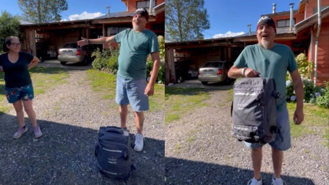 "Gracias a nuestra querida vecina Camila Curarrehue, que encontró nuestra maleta botada", expresó el artista, quien añadió con humor: "Así que recuperamos al 'Flaco', hay 'Flaco' para rato. Desde ahora usted es mi santita de acá de Pucón".