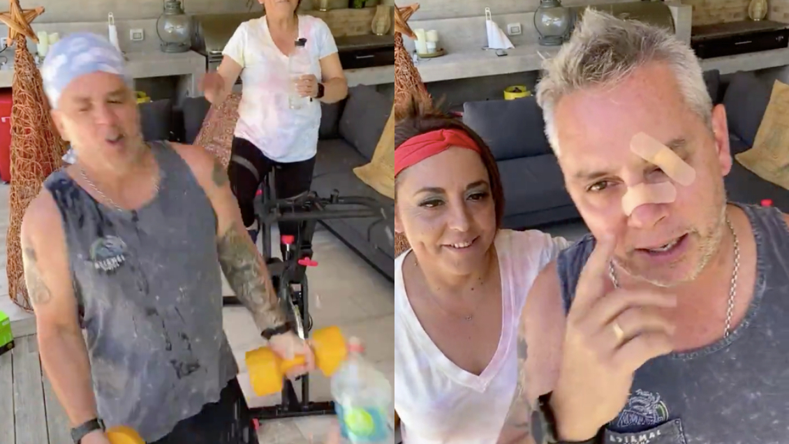 El ex conductor de "Mucho Gusto" se encontraba haciendo una rutina de ejercicios junto a su equipo y a su asesora del hogar María "Nené" Vilchez, cuando pidió que le lanzaran agua diciendo "tíramela en la cara".