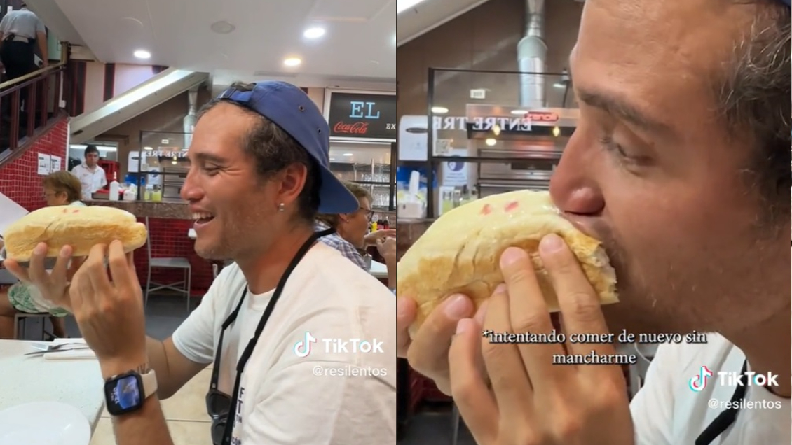 Fue entonces cuando el turista le dio un primer mordisco a su comida con chucrut, tomate y mayonesa, dejando un pequeño rastro de ésta última en su nariz. "Está buenazo. Es un arte comer completo", aseguró el hombre mientras su amigo le explicaba que estaba probando la versión tradicional del sándwich, el cual se le estaba cayendo por un lado.