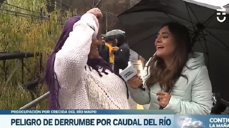A raíz de la crecida del Río Maipo, este viernes en el matinal de Chilevisión entrevistaron a personas afectadas por las lluvias y una mujer sacó risas cuando se le escapó un garabato.