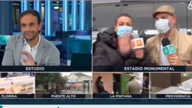 Así ocurrió un encuentro durante la transmisión en vivo de Mega entre José Antonio Neme y Tonka Tomicic, que estaban despachando desde el Estadio Monumental.