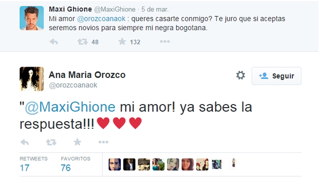 La actriz Ana María Orozco fue invitada a desposarse a través de Twitter.