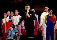 19:13 En el Teatro Teletón, Don Francisco da paso a la historia del ejecutivo Alvaro Cámbara, quien vuelve a la cruzada solidaria como discapacitado, después de anunciar el aporte del Banco de Chile en 2003.