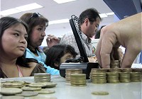 19:00 La sucursal de Apoquindo pone la nota negra, con 10 millones bajo lo acumulado en 2004. Las siete solitarias cajas que han sido habilitadas esperan por aportes.