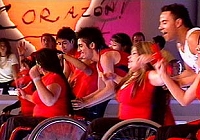 05:40 "Todo Chile arriba" se llama el segmento que conducido por Felipe Camiroaga y Vivi Kreutzberger, en el que rostros de la TV separados en dos equipos -amarrilo y naranja- se sometieron a diversas pruebas como el arrebatar a una pañoleta al rival.