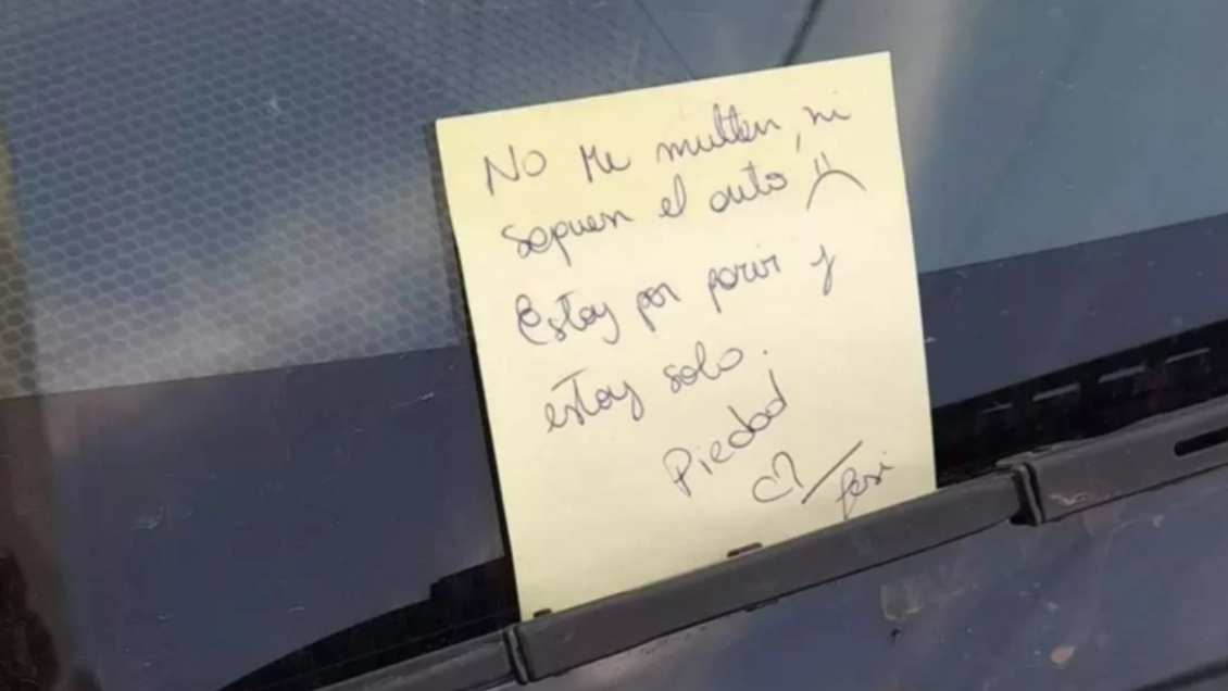 "No me multen ni saquen el auto. Estoy por parir y estoy sola. Piedad", decía el mensaje escrito en un pequeño papel amarillo, acompañado del dibujo de una carita triste y un corazón.