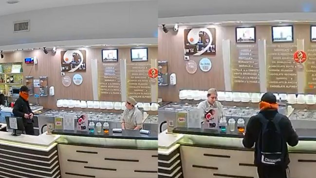 El episodio fue captado por las cámaras de seguridad del lugar, las cuales registraron el momento en el que el asaltante ingresó tranquilamente a la heladería, y fingió ser un cliente más.