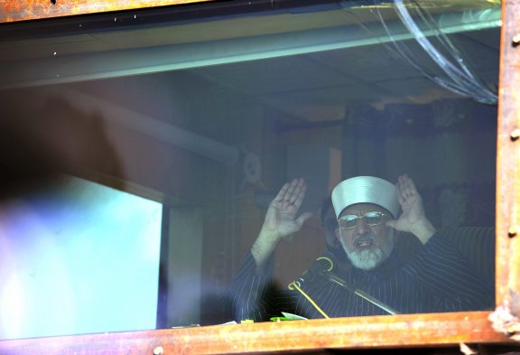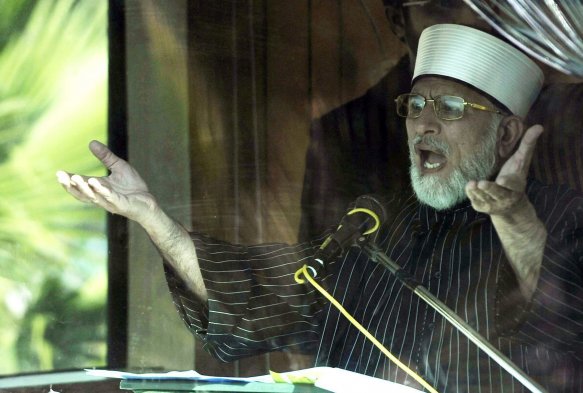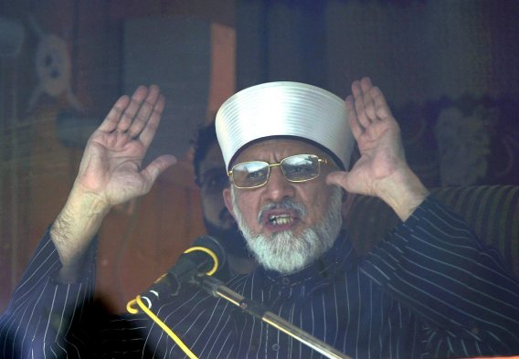 Adherentes a Muhammad Tahir ul Qadri, fundador de la organización internacional islámica Minhaj-ul-Quran, marchan en protesta por las calles de Islamabad en Pakistán pidiendo al gobierno reformas políticas.