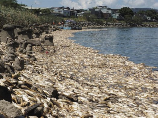 Miles de múgiles murieron en las costas de Taiwán debido a las altas temperaturas registradas en las cercanías del río Keelung, en Taipei, según confirmpo el Departamento de Protección Medioambiental.