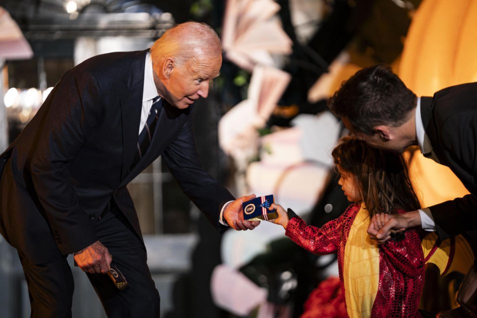 El presidente de Estados Unidos, Joe Biden, y la primera dama, Jill -disfrazada de oso panda-, celebraron su último Halloween en la Casa Blanca y recibieron a un grupo de niños –hijos y nietos de trabajadores de la sede de Gobierno-, a quienes les entregaron dulces y libros, acompañados de la Orquesta de Cámara de la Marina, que tocó bandas sonoras de series y películas.