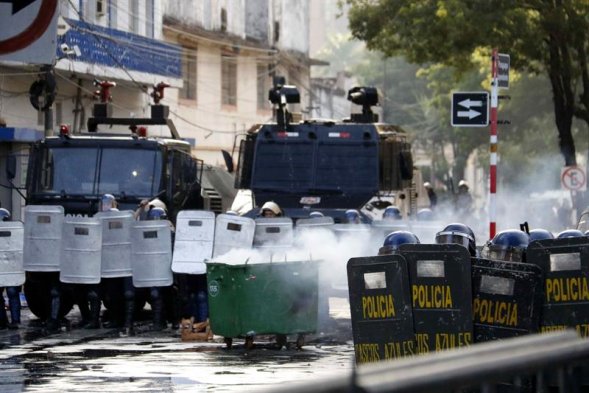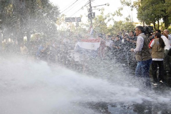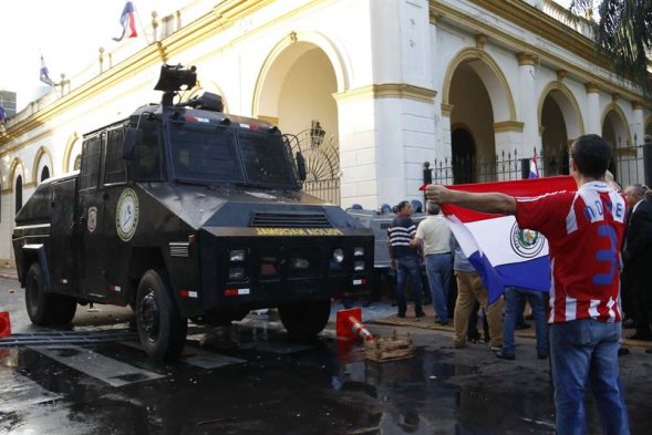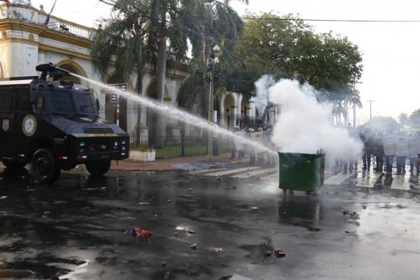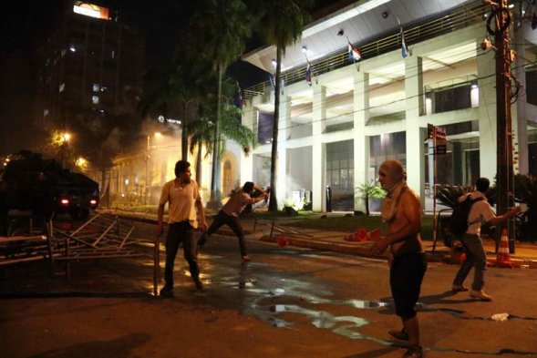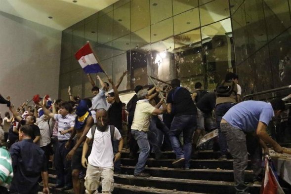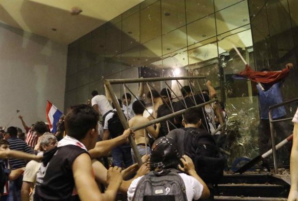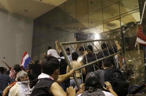 Después de que este viernes un grupo de 25 senadores aprobara el proyecto de enmienda constitucional para habilitar la polémica reelección presidencial, manifestantes destrozaron vidrios del Congreso de Paraguay en Asunción y causaron un incendio que afectó a dos pisos del edificio.