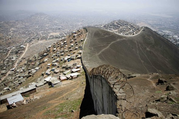 El muro de concreto y púas que separa desde hace cuatro años la pobreza del suburbio de Vista Hermosa y la opulencia del barrio de Las Casuarinas, en Lima, es el espejo de la desigualdad en el reparto de la riqueza que domina en Latinoamérica.