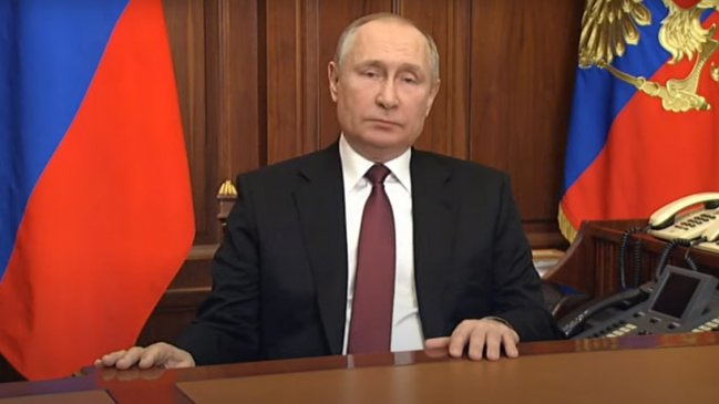 En un discurso televisivo, en plena madrugada de Moscú, aseguró que las "repúblicas populares" de Donetsk y Lugansk "se acercaron a Rusia con una solicitud de ayuda".