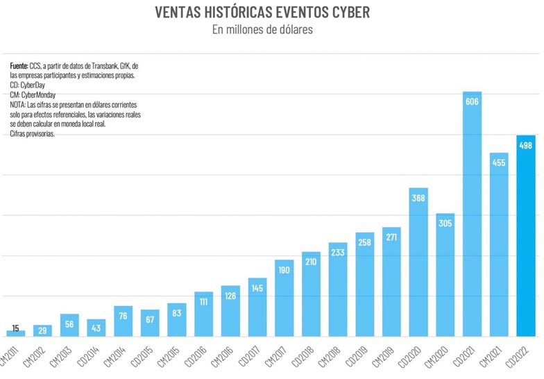 El CyberDay 2022 que se realizó entre lunes y miércoles alcanzó ventas por casi 500 millones de dólares, menos que en el mismo evento del año pasado, según las cifras preliminares de la Cámara de Comercio de Santiago (CCS).