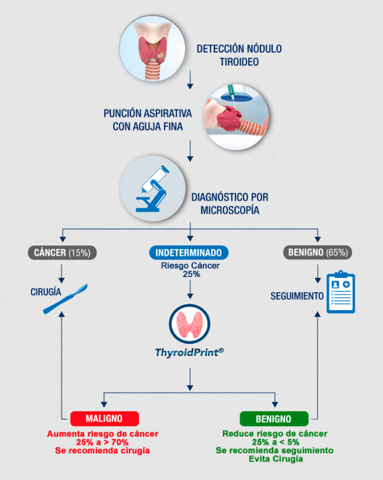 El tst permite determinar con 97% de exactitud si un paciente tiene o no cáncer de tiroides cuando la punción es informada como indeterminada.