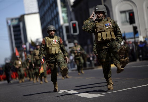 Con la autorización del intendente de la Región del Biobío, Rodrigo Díaz (i), se dio inicio a la tradicional Parada Militar en Concepción donde más de 5.000 efectivos de las Fuerzas Armadas y Carabineros marcharon por la avenida Bernardo O'Higgins.
