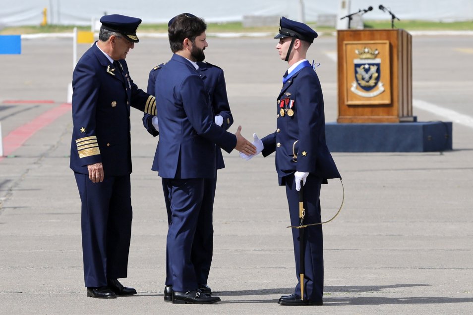 El Presidente Gabriel Boric y la exmandataria Michelle Bachelet participaron este martes de la ceremonia de egreso de los futuros oficiales de la Fuerza Aérea (FACh) pertenecientes a la promoción 2021-2024 de la Escuela de Aviación Capitán Manuel Ávalos Prado.