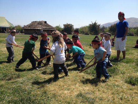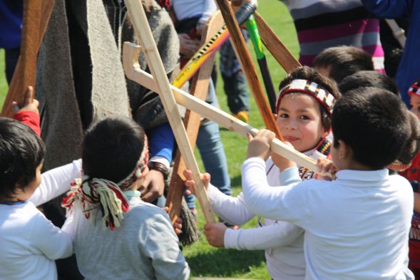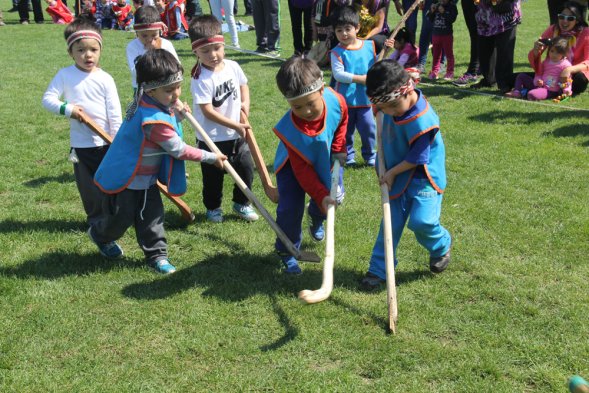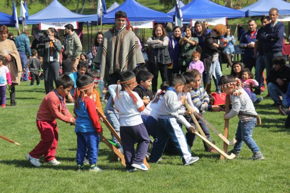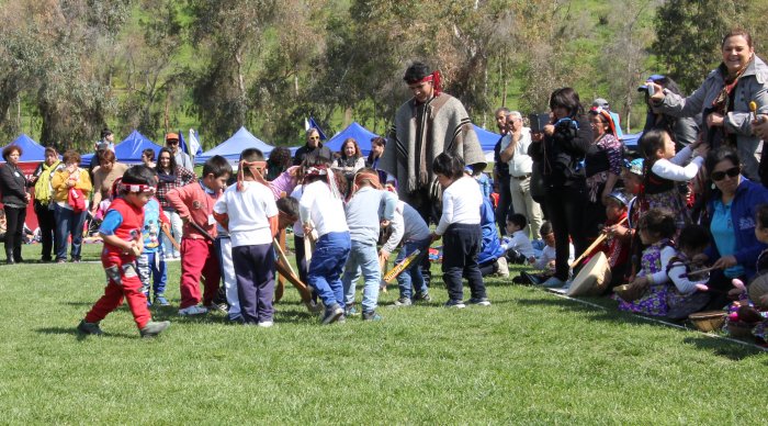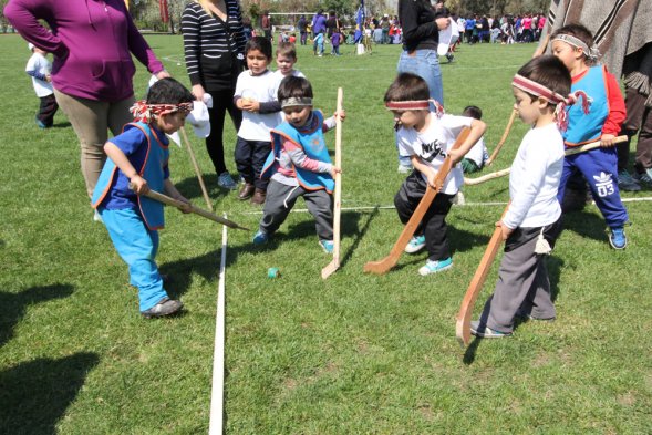 Niños entre 3 y 4 años de jardines de la Junji participaron en el V Encuentro Regional Palín, en el Estadio Municipal de Huechuraba. La actividad buscó enfatizar el sello intercultural de la educación preescolar, pues de los más de 200 mil niños que asisten a estos establecimientos, cerca de 10 mil pertenecen a pueblos originarios.