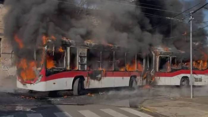 Bus fue completamente quemado en acceso al INBA