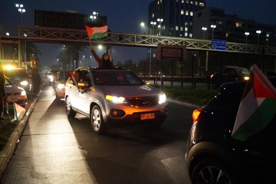 La Comunidad Palestina en Chile encabezó este martes una masiva caravana por Santiago en protesta contra la violencia en Medio Oriente entre Israel y el movimiento islamista Hamás, que ha dejado cientos de muertos, en su mayoría civiles palestinos. Según la organización, miles de personas en cerca de 700 vehículos se congregaron en el Club Palestino para manifestarse y movilizarse hasta el sector de Plaza Baquedano.