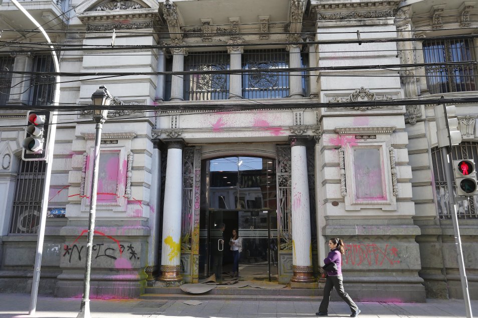 En el marco de la cuenta pública del Presidente Sebastián Piñera de este viernes, un grupo de manifestantes lanzó pintura a la fachada del diario El Mercurio de Valparaíso, causando graves daños en el tradicional edificio.