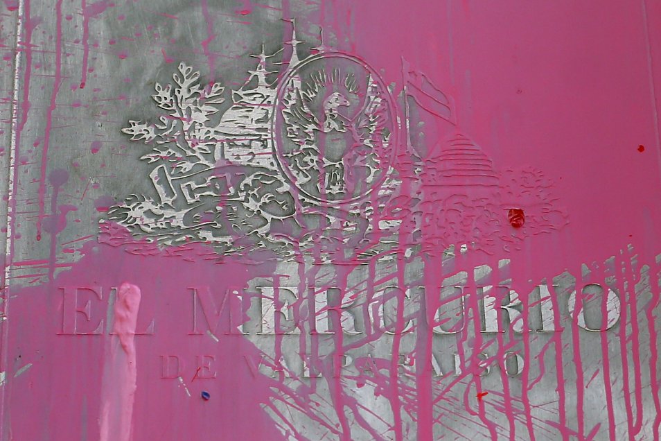 En el marco de la cuenta pública del Presidente Sebastián Piñera de este viernes, un grupo de manifestantes lanzó pintura a la fachada del diario El Mercurio de Valparaíso, causando graves daños en el tradicional edificio.